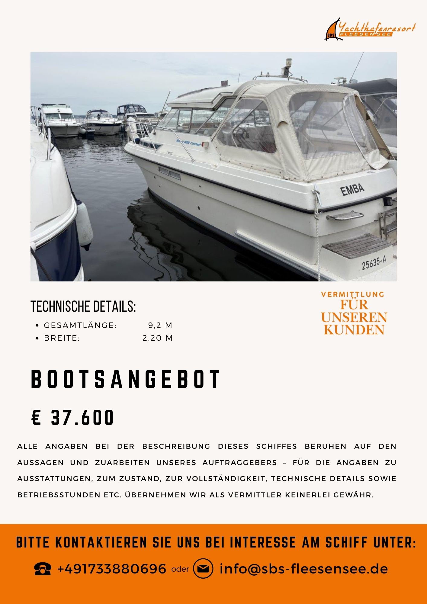 Alle Angaben bei den beschriebenen Kundenbooten beruhen auf den Aussagen und Zuarbeiten unserer Auftraggeber – für die Angaben zu Ausstattungen, zum Zustand, zur Vollständigkeit, technische Details sowie Betriebsstunden etc. übernehmen wir als Vermittler keinerlei Gewähr.